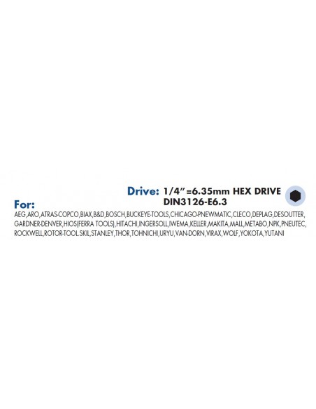 Drive: 1/4”=6.35mm HEX DRIVE
